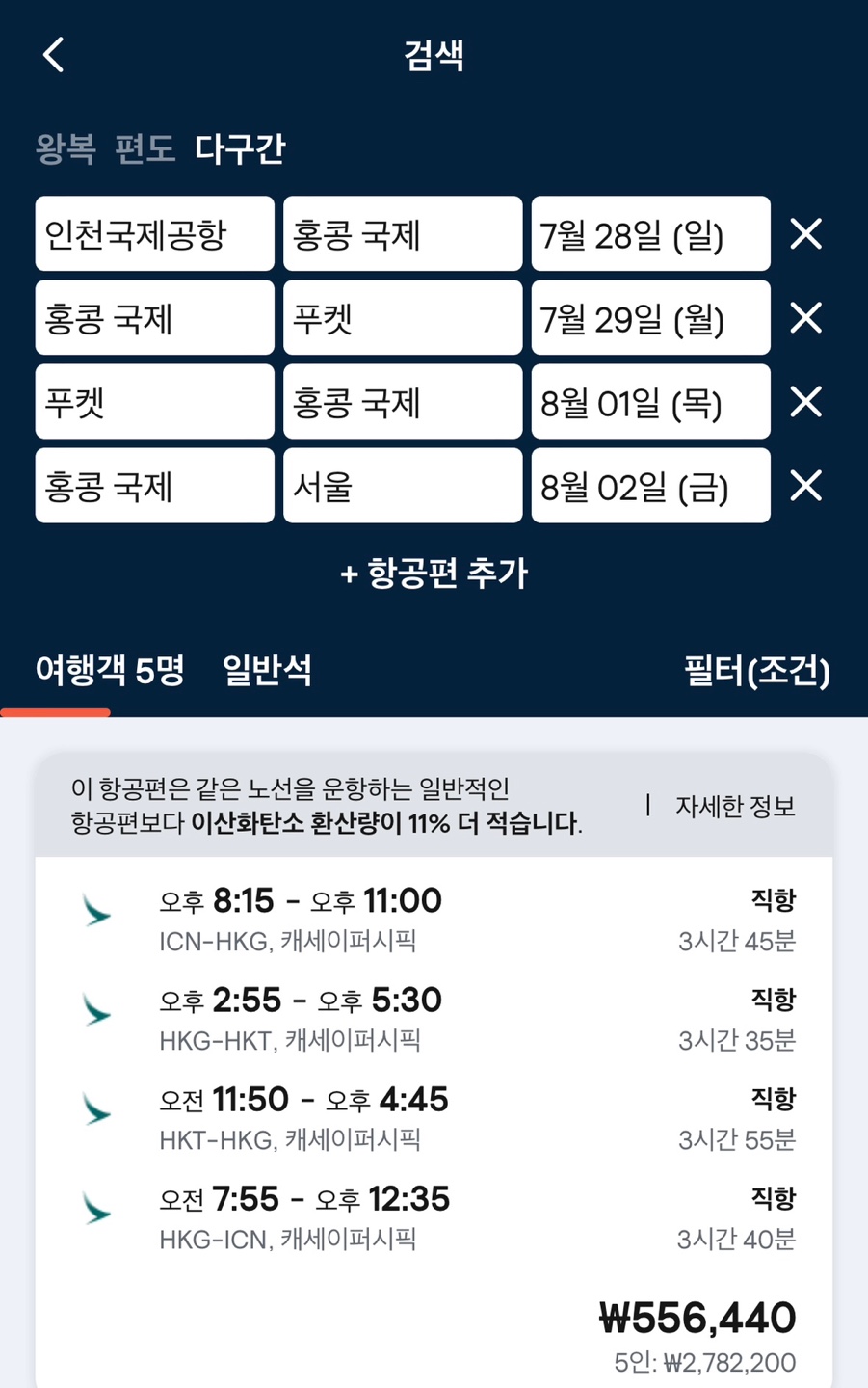 5. 다구간으로 설정하여 항공권을 검색한다.